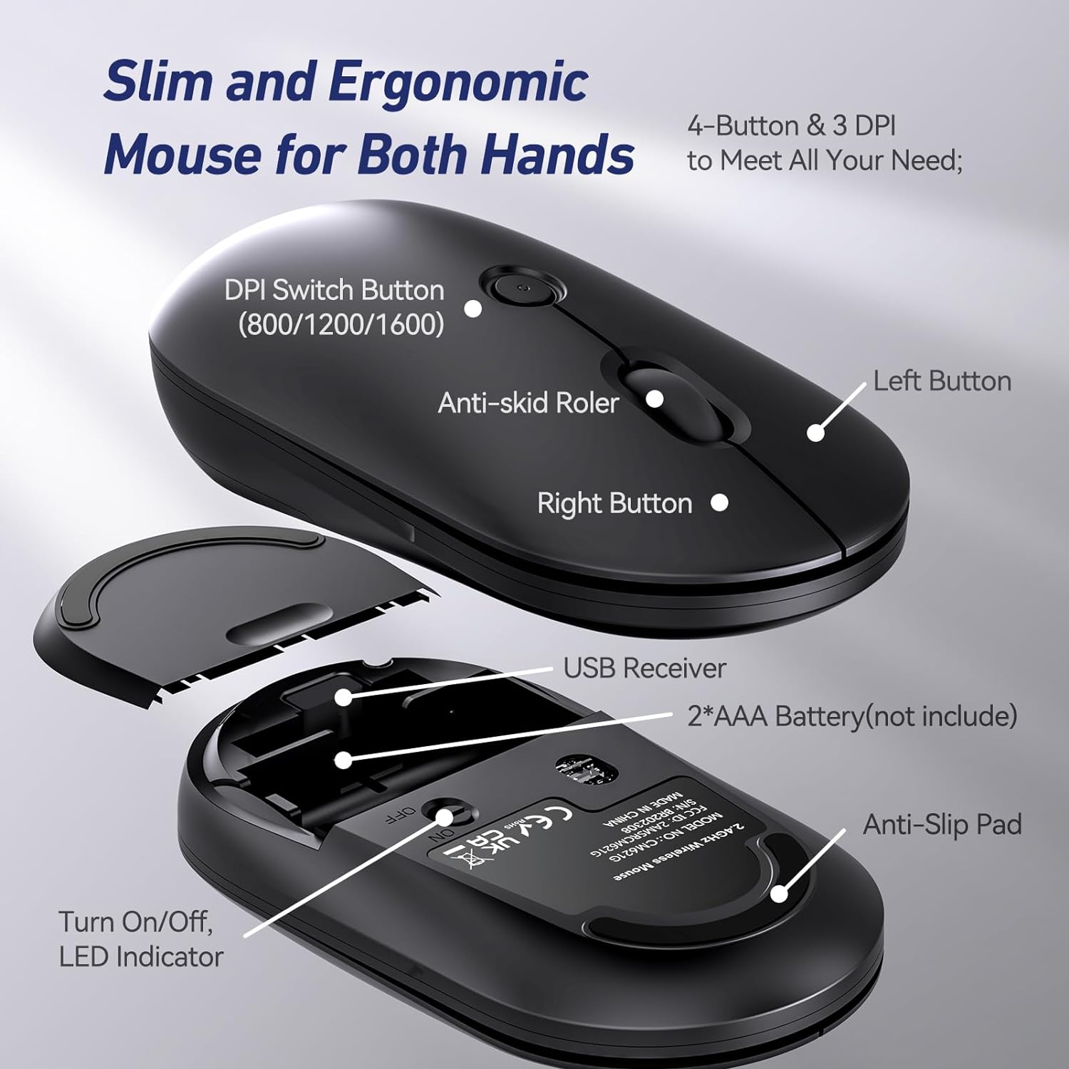 Wireless Keyboard and Mouse Combo, Acebaff 2.4G Quiet Wireless Computer Keyboard with Phone