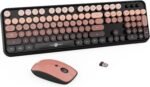 Wireless Keyboard and Mouse Combo, Retro Typewriter Style Keyboard with Cute Round Keycaps,