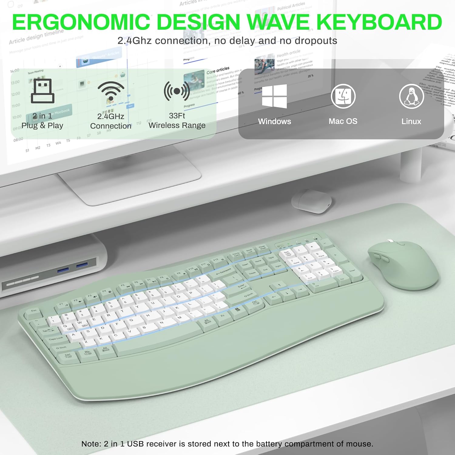 Specifications ·Ergonomic Keyboard ·Keys:104 ·Ergonomic Mouse ·Quiet Click ·Interface: USB