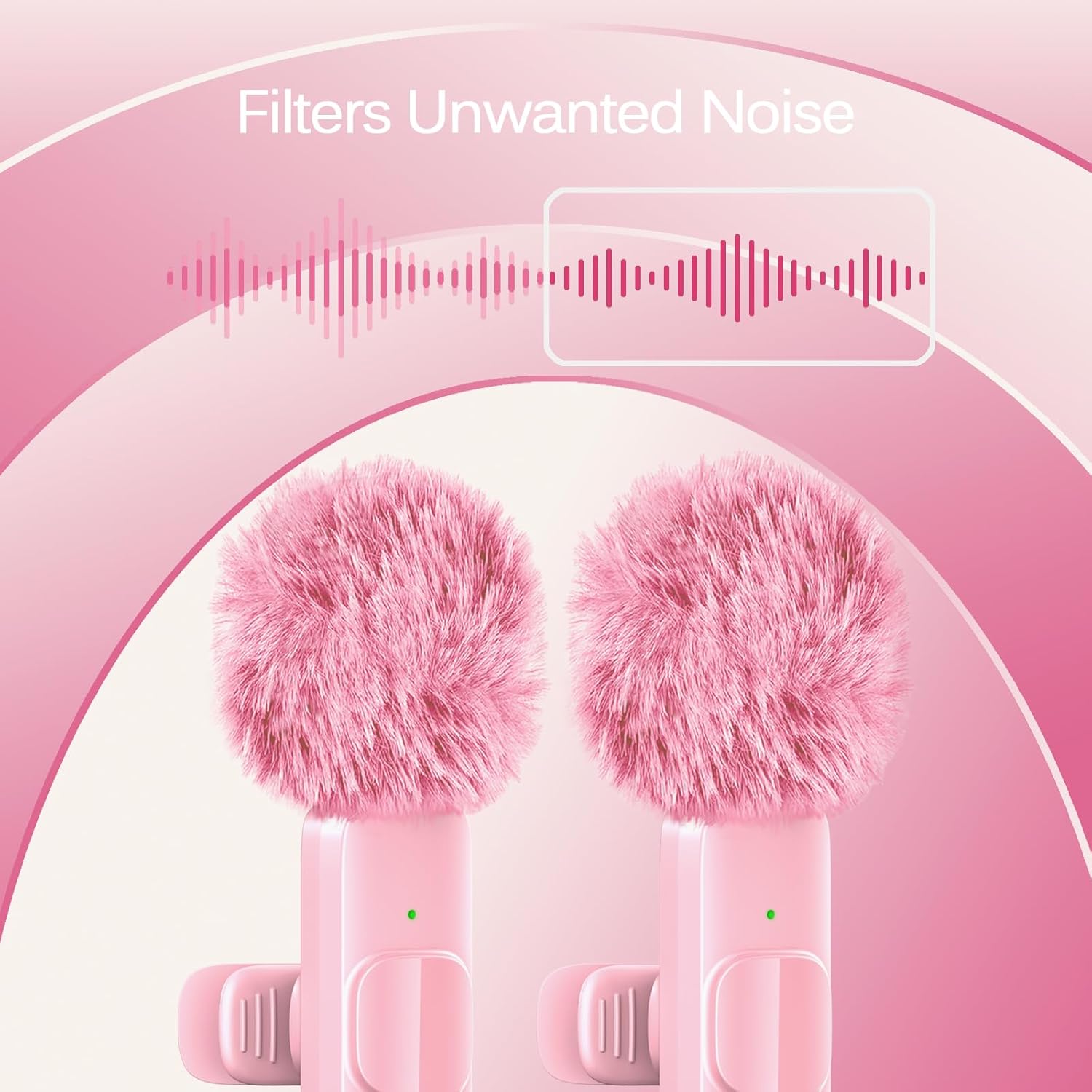 2-in-1 Fast Charging for iPhone & Android Dual Type-C ports charge 2 pink mini microphone together in 1 hour. Using 2 microphones in turn when 1 of them runs out of the battery to get 8h Working Time.