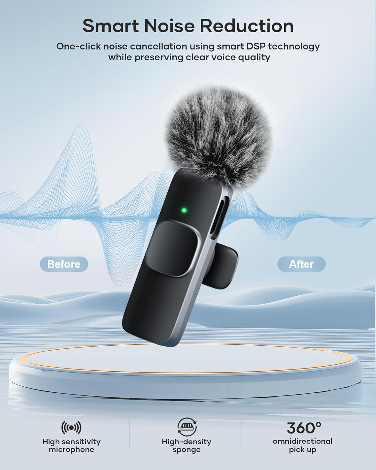 Omnidirectional Sound Pickup: Equipped with high-density windproof foam and a high-sensitivity microphone, it records every sound detail clearly, regardless of the surrounding environment. The package includes 2 lapel microphones, allowing two people to participate in video recording simultaneously.