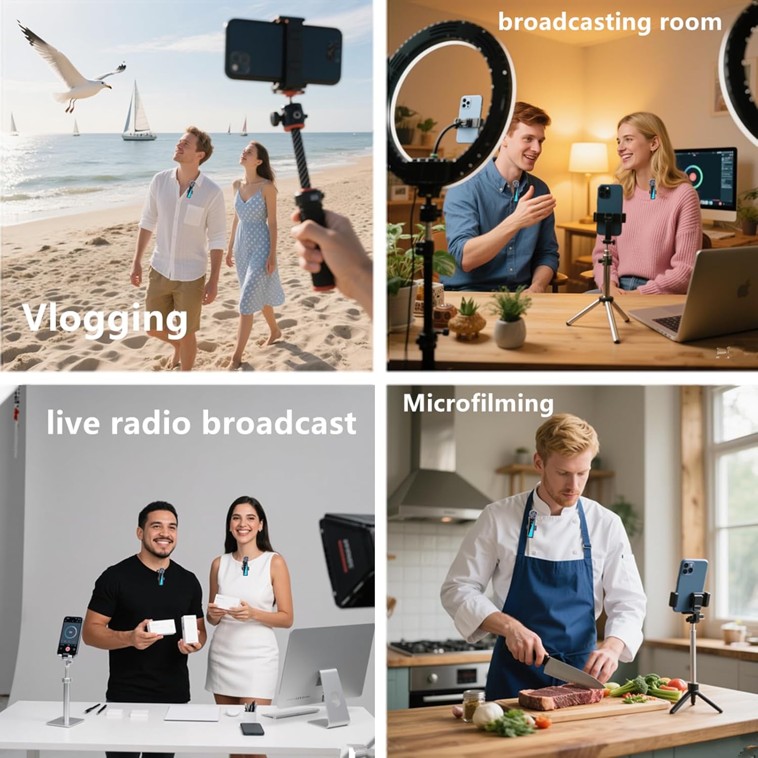 【application scenario】 Mini microphone for iphone adopts a unique lapel clip detachable design, the microphone can be switched left and right to wear position, lapel microphones are compatible with iPhone15/ iPhone16 series, android phones, and also compatible with iPad air 5, laptops, microphone can be used for podcasting, video blogging, teaching interviews, online meetings, live streaming, as well as social media platforms such as YouTube and TikTok,lavalier microphone wireless,clip on microphone wireless,tiny microphone,clip on microphone,wireless microphone for iphone