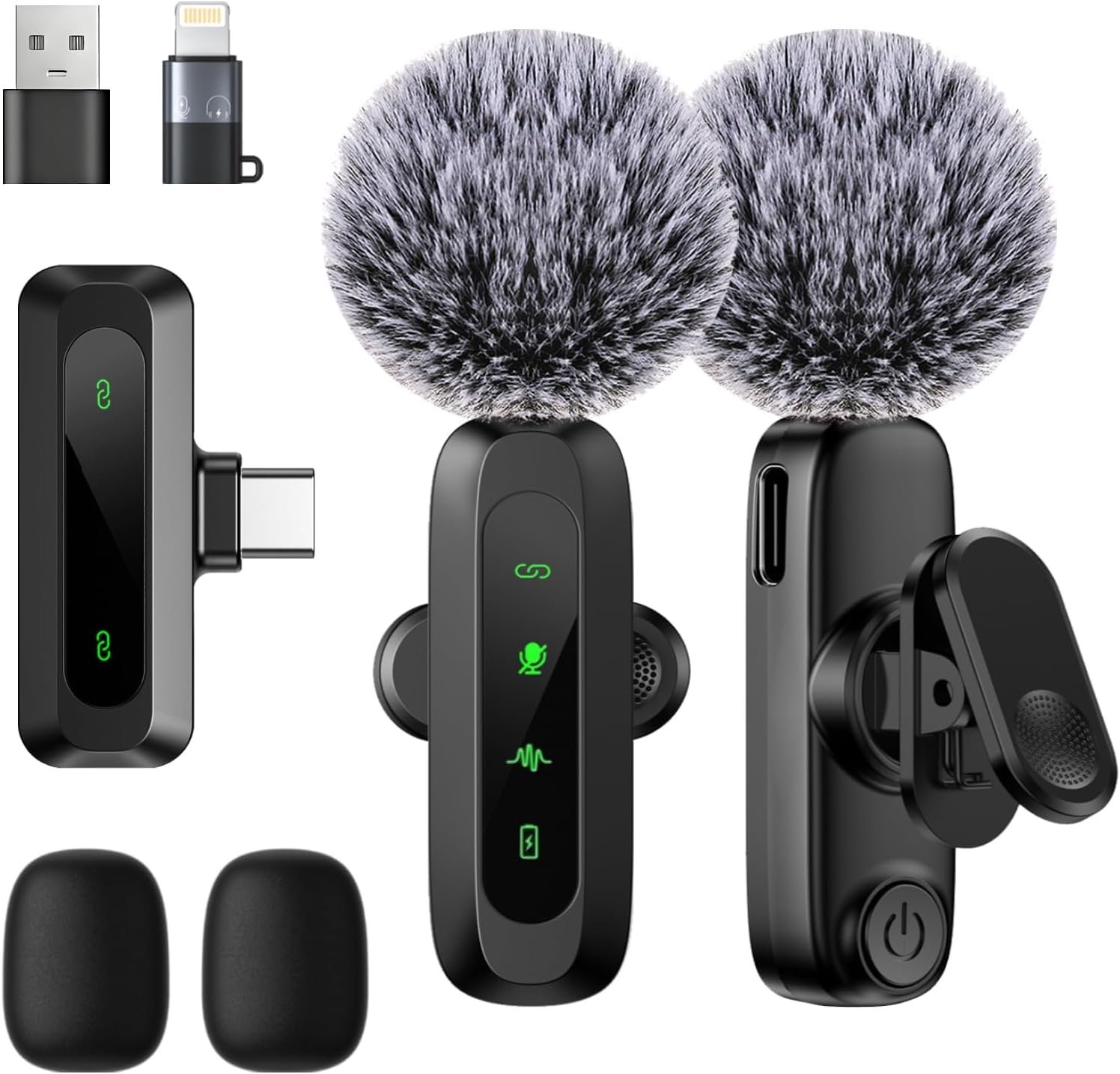 Wireless Lavalier Microphone for iPhone/iPad/Android Phone – Mini Microphones for Podcast Content Creators, Professional Noise Reduction Lapel Mic for Vlog Video Recording Live Streaming