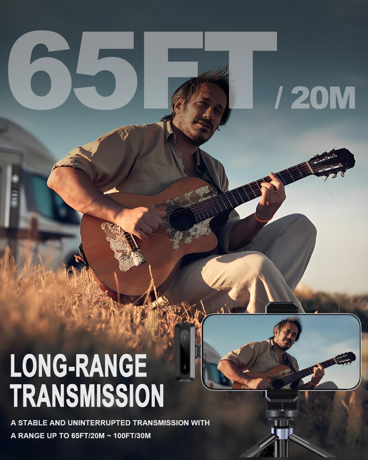 65FT HIGH-SPEED TRANSMISSION ▎JCHIEN Wireless lavalier microphone is equipped with 2.4 Ghz high-speed wireless transmission technology, which can achieve a stable connection at an ultra-long distance of 20~30M in an accessible environment. whether it is close-up recording or long-distance shooting, it can provide high-definition sound quality performance, perfectly adapted to a variety of creative scenarios: short video shooting, live streaming, film and television dubbing, talk shows, vlog production, and content creation on social platforms such as youtube / instagram / tiktok. it is an indispensable recording tool for professional creators.