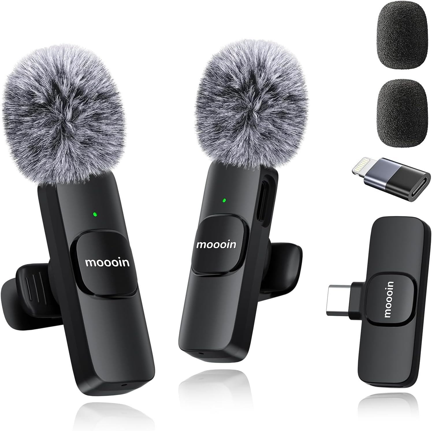 Wireless Mini Microphone for iPhone/Android:Lapel Microphone for Video Recording,Plug and Play,Live Streaming and Podcasting-Textured Black