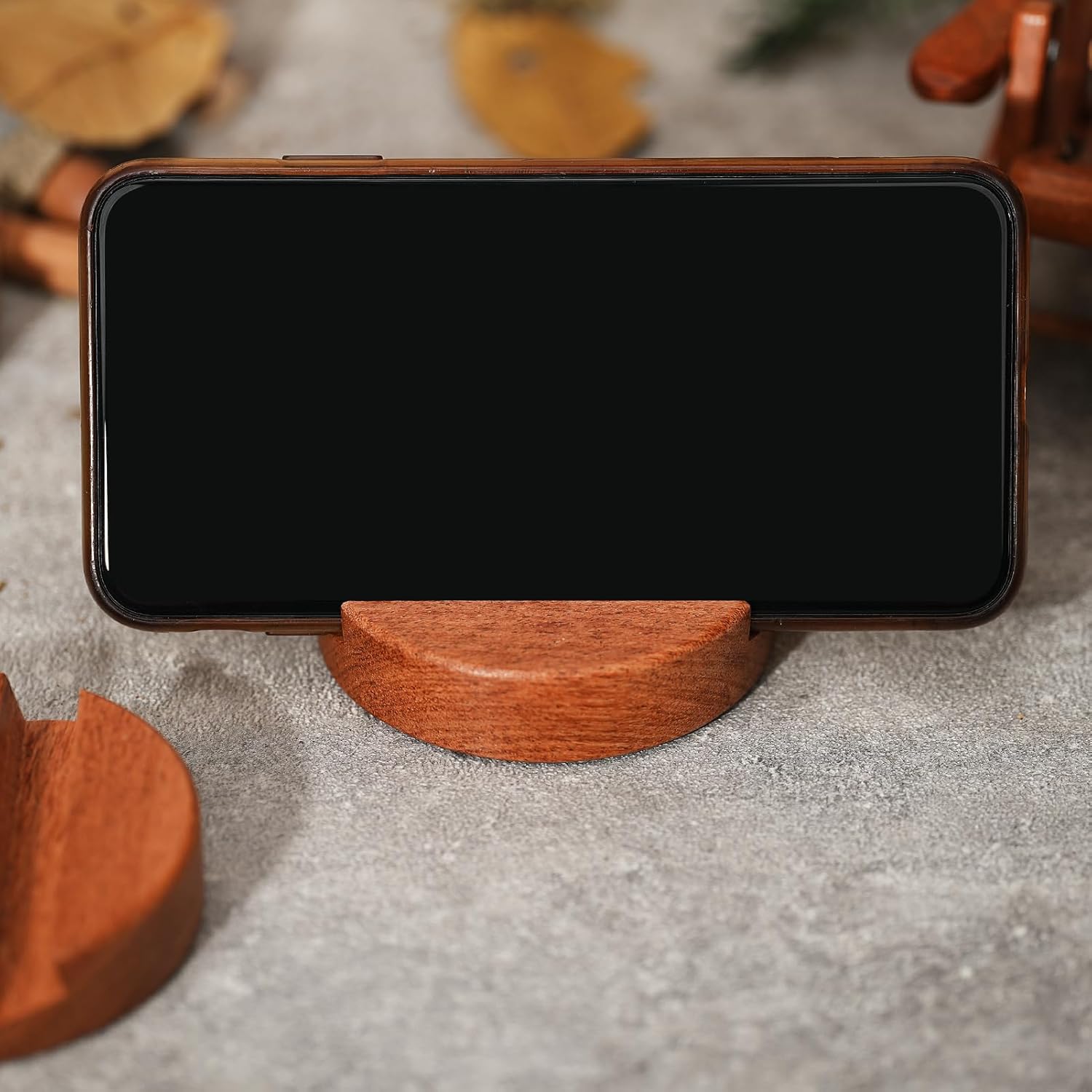 It is handmade of natural rosewood with special textures and smooth surface which can perfectly hold your smart phone. This wood grain and exquisite workmanship will show off your high-end taste and enhance your office and family room.