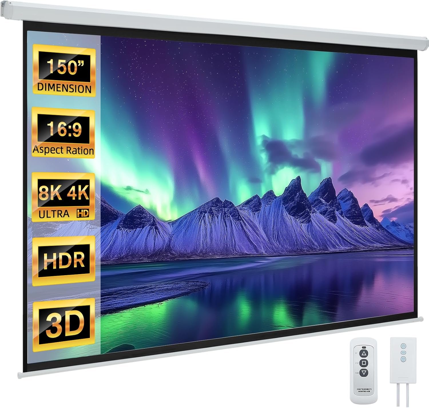 【SIZE】The Biggest projector screen in our listing so far!!!!!!!!Featuring an expansive 130.71″×73.62″ high-gain viewing area, housed in a 133.07″×80.71″ screen frame and 141.34″×84.65″ overall motorized assembly, this robust yet manageable 23.59 lbs screen delivers a premium cinematic experience. Designed for elite installations, it’s ideal for professional home theaters (perfect for private villas and luxury homes), university auditoriums (enhancing large-scale lectures and graduation live streams), and corporate exhibition halls (serving as a striking centerpiece for auto shows and tech expos).