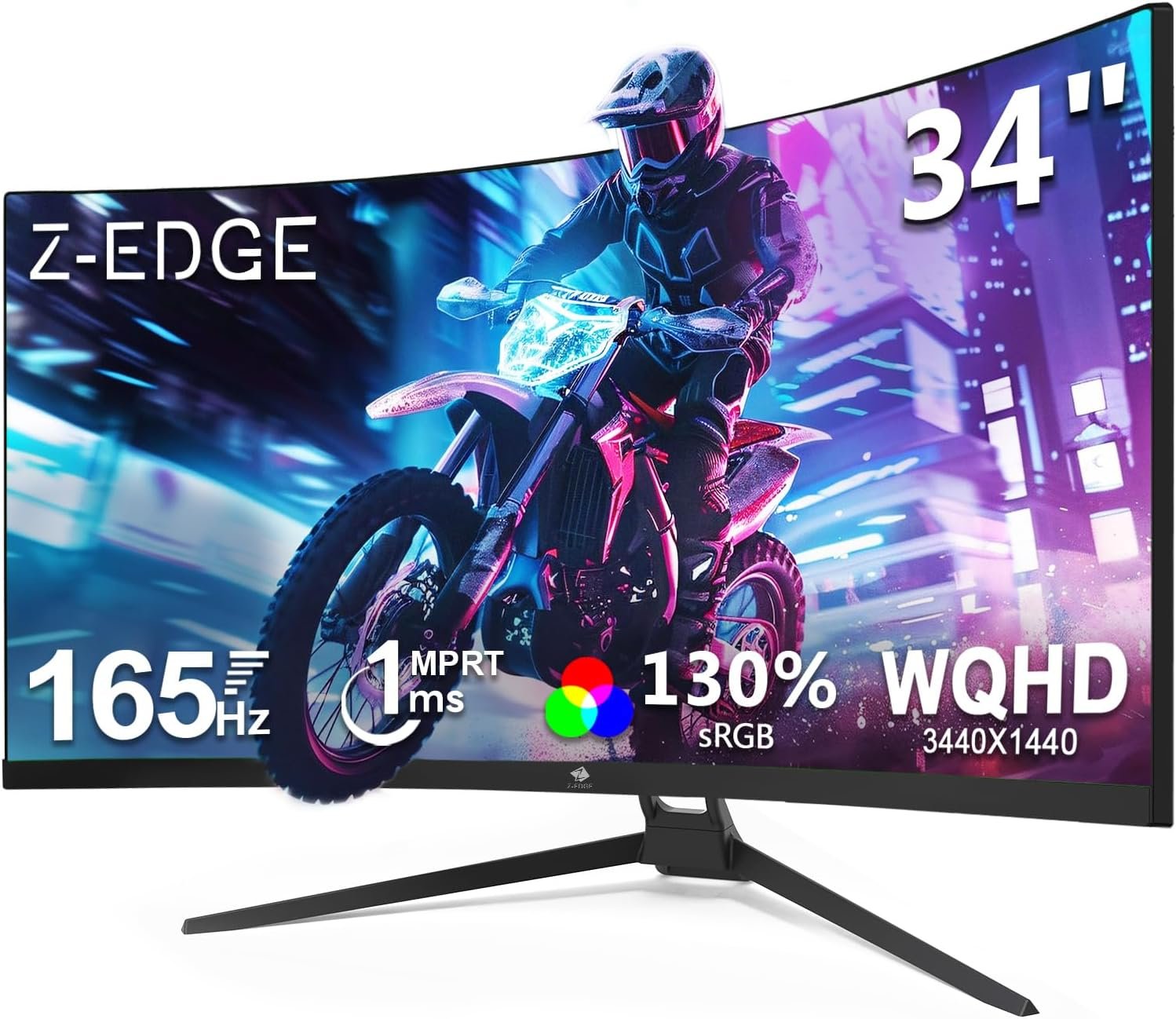 Z-Edge 34″ Curved Gaming Monitor, WQHD 1440P 165Hz 144Hz PC Monitor, MPRT 1ms, 21:9 Aspect Ratio, 1500R, 16.7M Colors, 3000:1 Contrast, UG34 Frameless Bezel, 2X DP 1.4 Ports and 2X HDMI 2.0 Port
