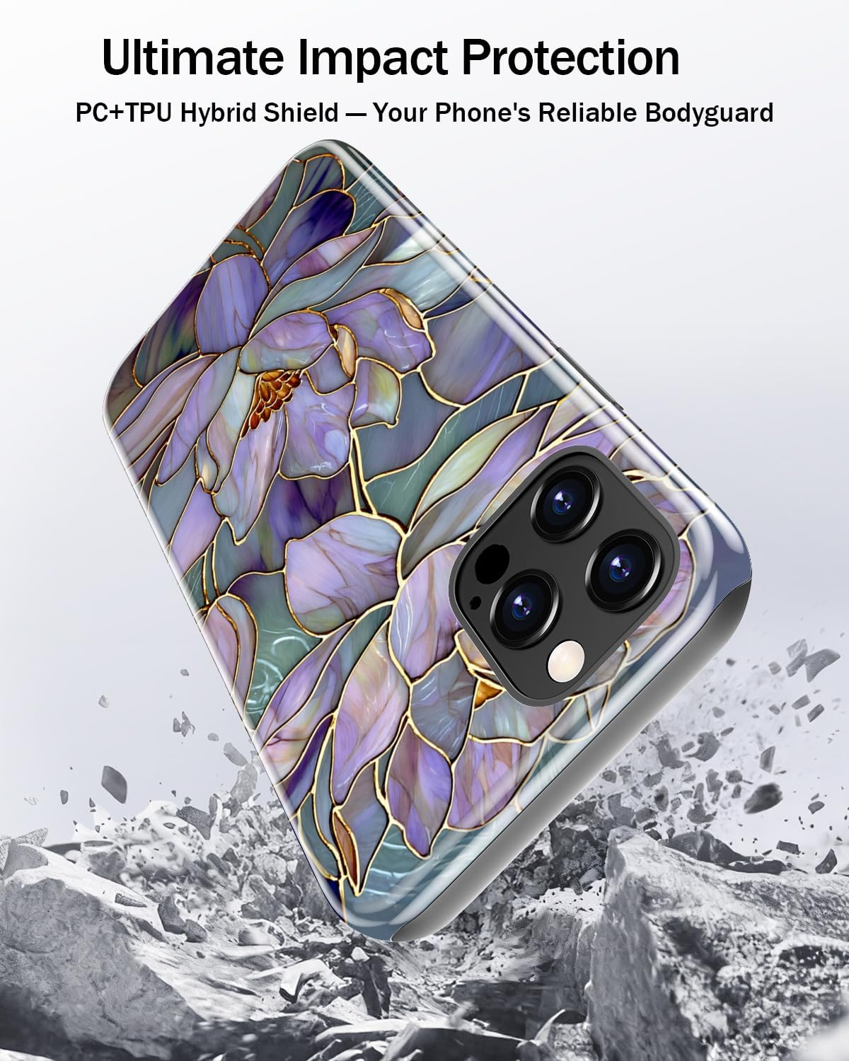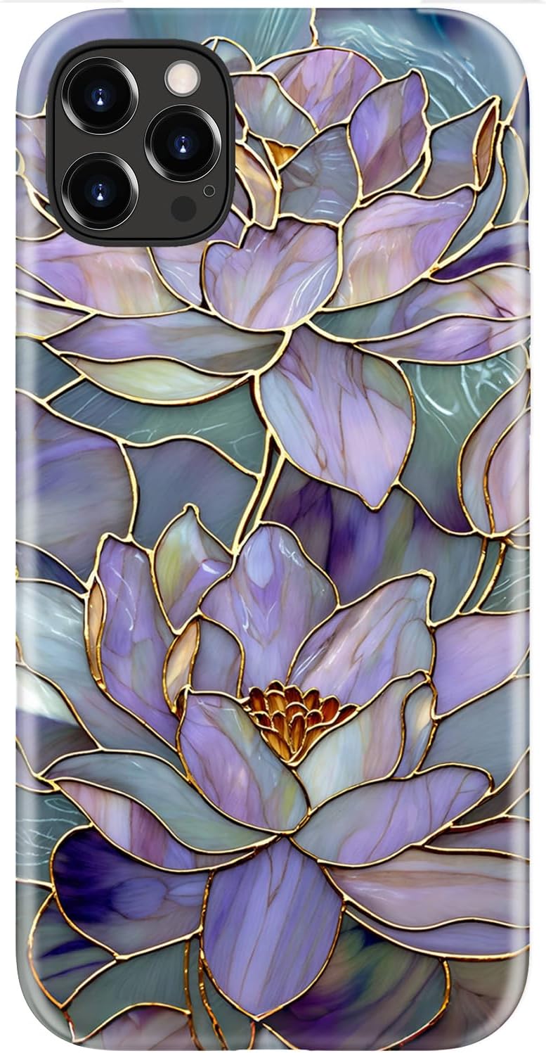 ZADORN for iPhone 12 Pro Max Case Cute – Wireless Charging Compatible – Dual-Layer Soft Silicone + Hard Shell – Trendy Floral Design – Glossy Phone Cover for Women – Blooming Purple Lotus
