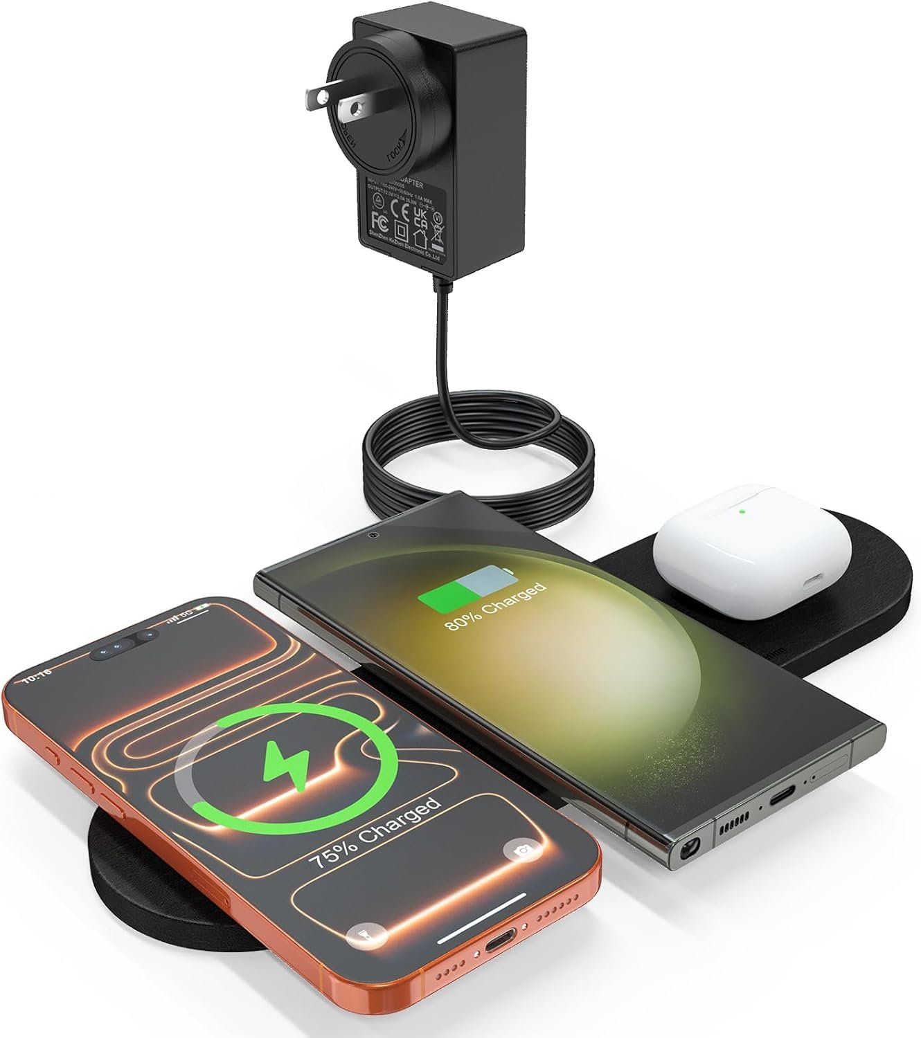 A Perfect Gift for Every Occasion — This wireless charging pad comes in a sleek, premium gift box, blending style and practicality. Picture your friend powering up devices at their clutter-free dorm desk, a parent keeping the bedside organized while charging multiple devices, or a coworker adding a functional touch to their office. Whether it’s for a birthday, Christmas, graduation, retirement, housewarming, or office gift exchange, this high-quality, tech-inspired charger delivers immediate convenience and delight—no setup, no hassle, just a gift that’s sure to be appreciated and used from the moment it’s opened.