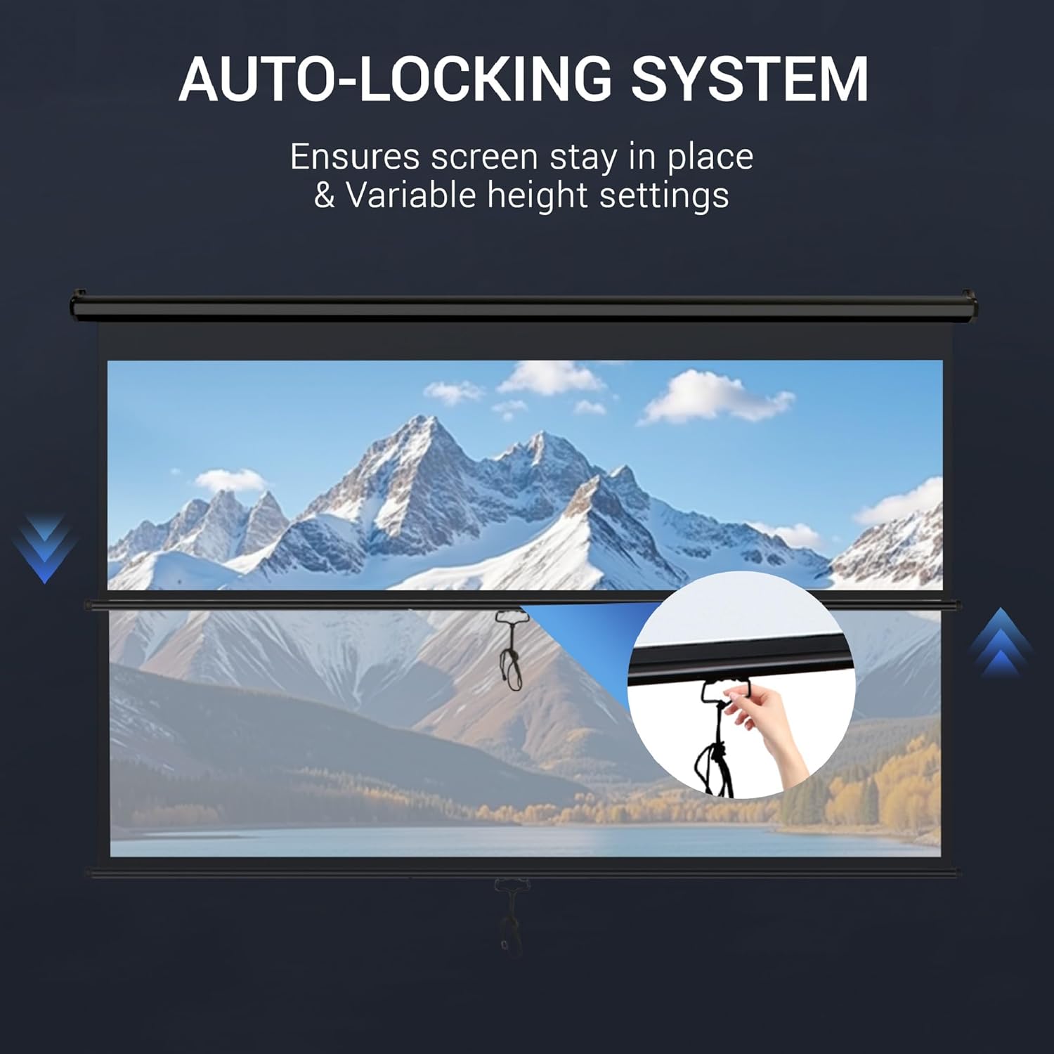 Projector Screen 100 Inch: The large 100 inch diagonal video screen is equipped with 16/9 aspect ratio , is big enough to enjoy movies, games, office presentations and outdoor movies