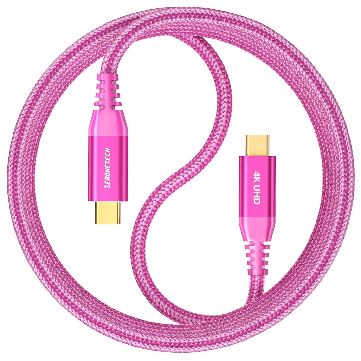 ZeroneTeck USB C Monitor Cable [3ft, Pink], 20Gbps High-Speed Data Transfer, 4K@60Hz Display Video Output, USB 3.2 Gen 2×2 100W Charging for iPhone 17,MacBook,iPad,Dell,HP,KYY,ARZOPA,Portable Monitor
