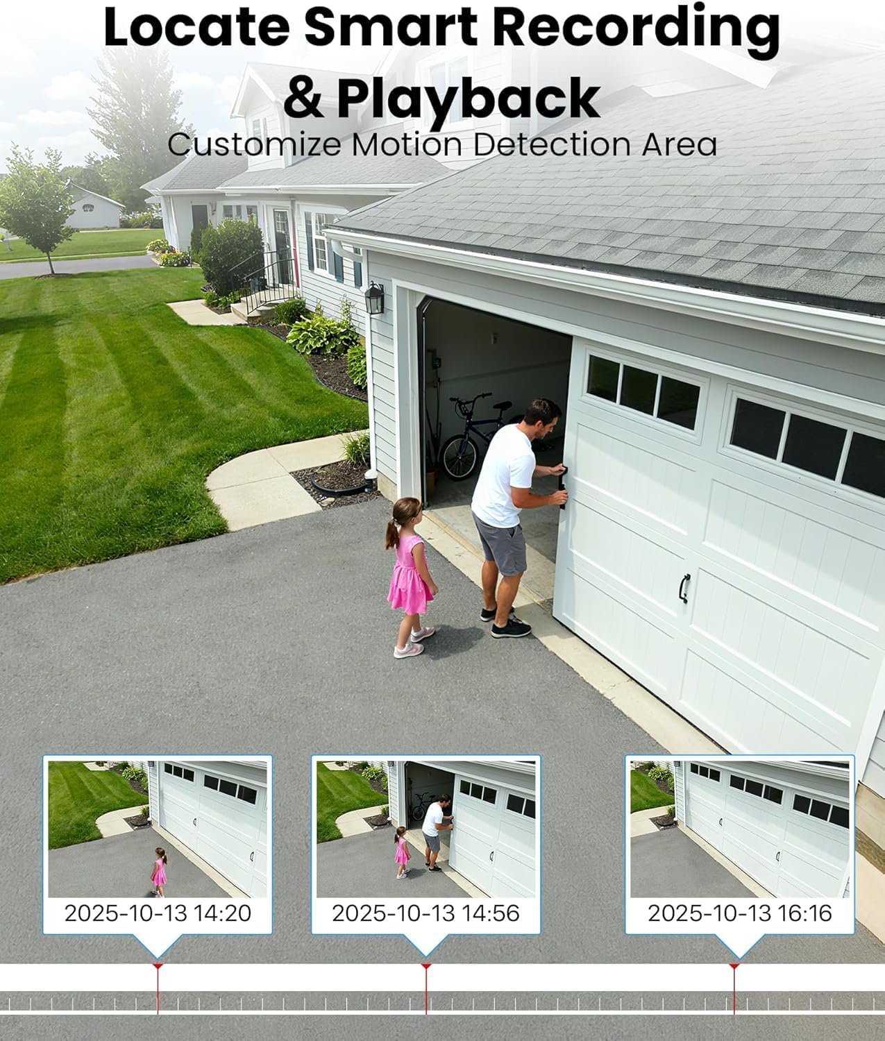 【AI-Powered Human & Vehicle Detection】Advanced algorithms accurately distinguish between people,vehicles, and other objects,reducing false alerts by up to 90% with instant mobile notifications and email alerts when motion is detected