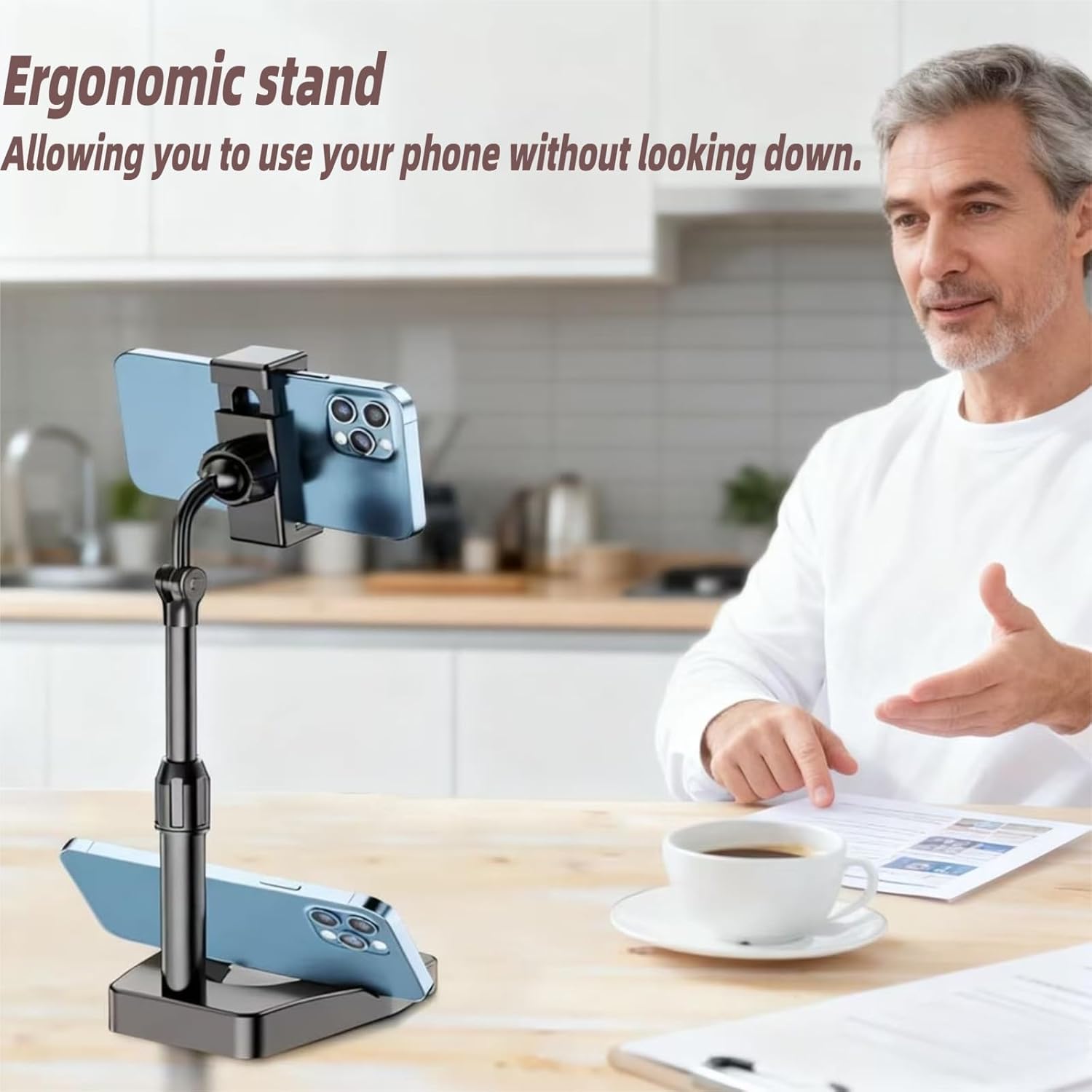 ZYEUNAGNB] Adjustable Phone Stand Holder for Desk, 360° Rotatable Ergonomic Stand with Heavy Metal Base for Cell Phone and Tablet, Foldable & Height Adjustable Stand for Office, Home, Watching Videos